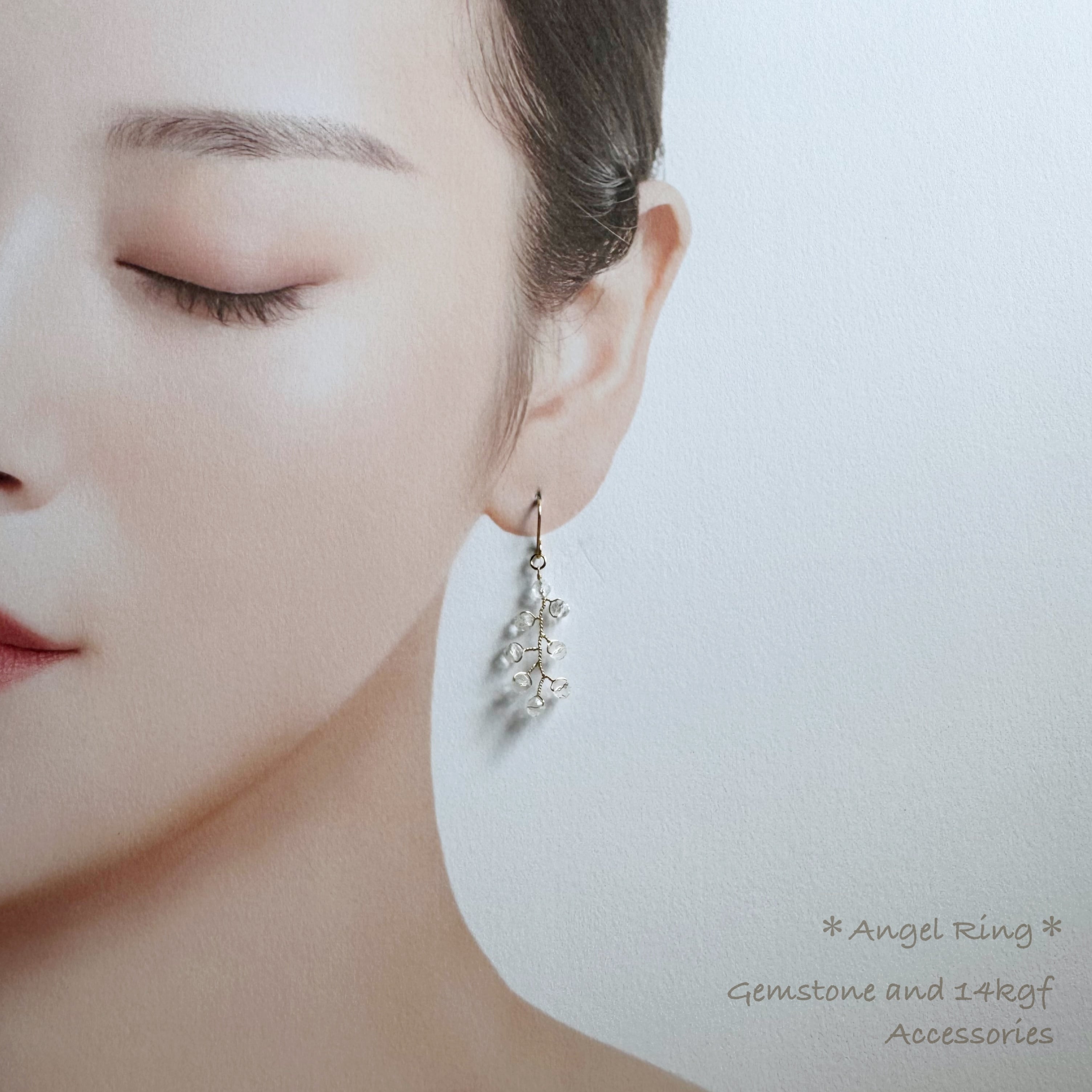 にじいろによる開運と水晶による浄化で、晴れやかな気持ちで過ごせるお守りになればとお仕立てしました。小粒だからこそ輝きが美しい耳飾りです。