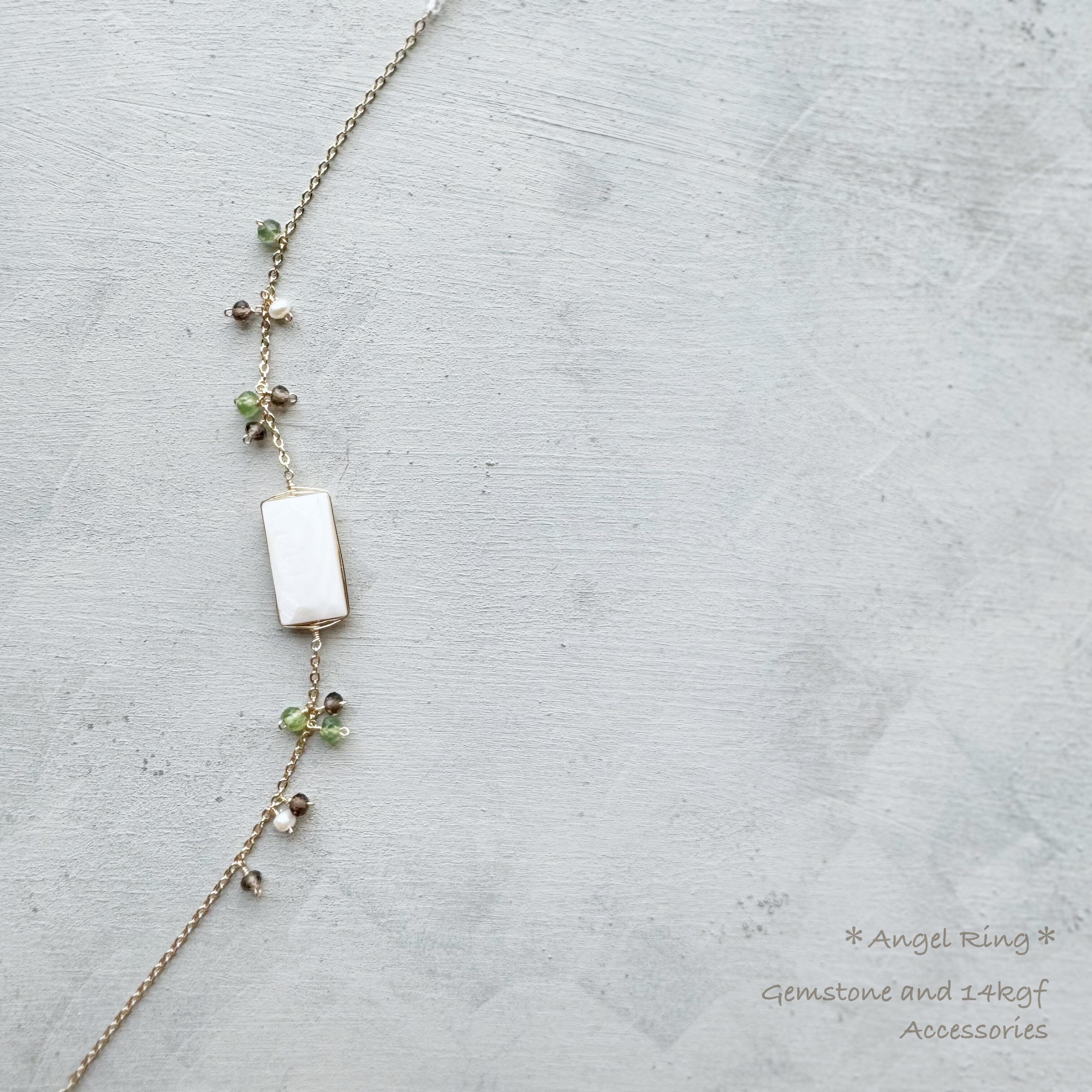 ♦素 材:白蝶貝、サーペンティン、スモーキークォーツ、淡水パール、14KGF