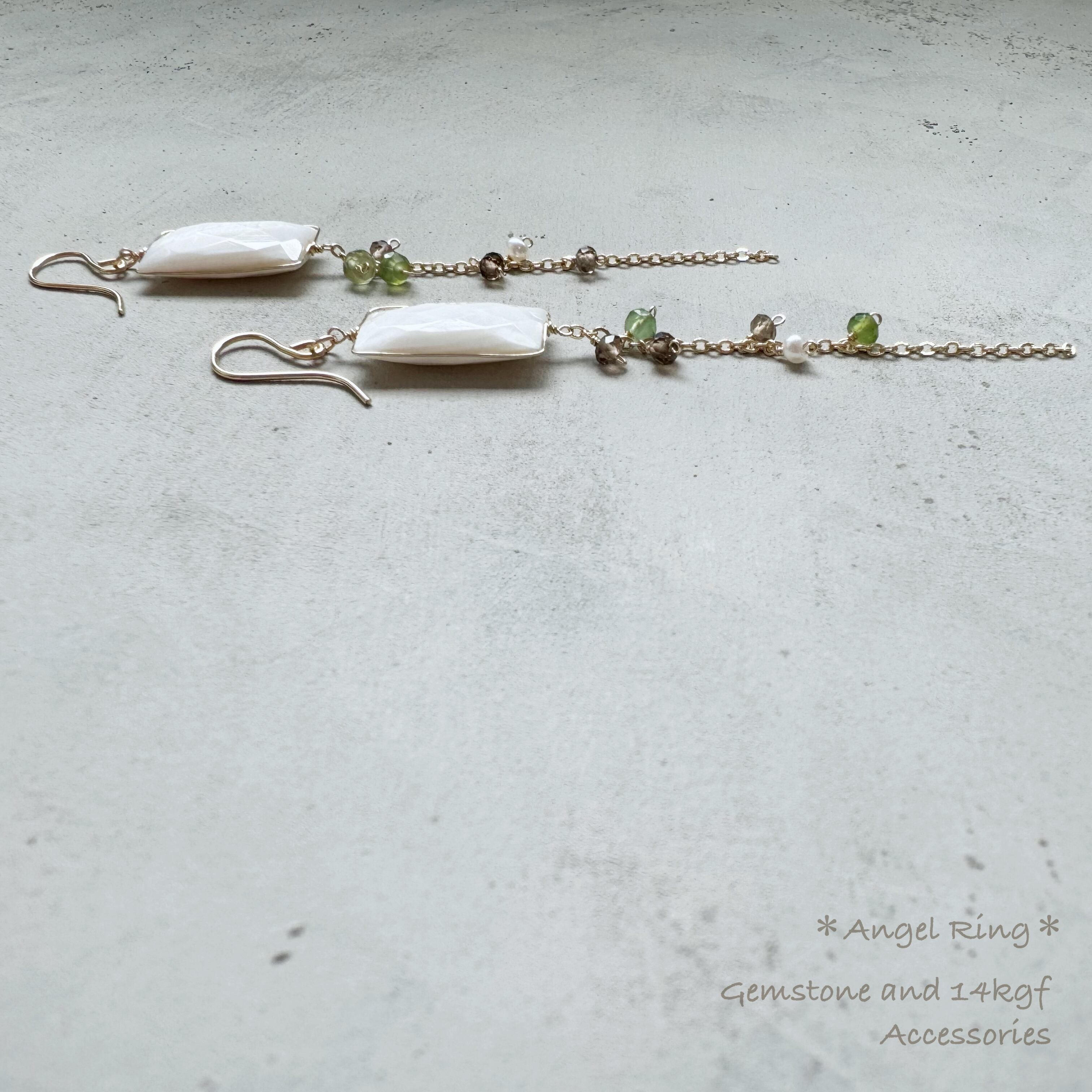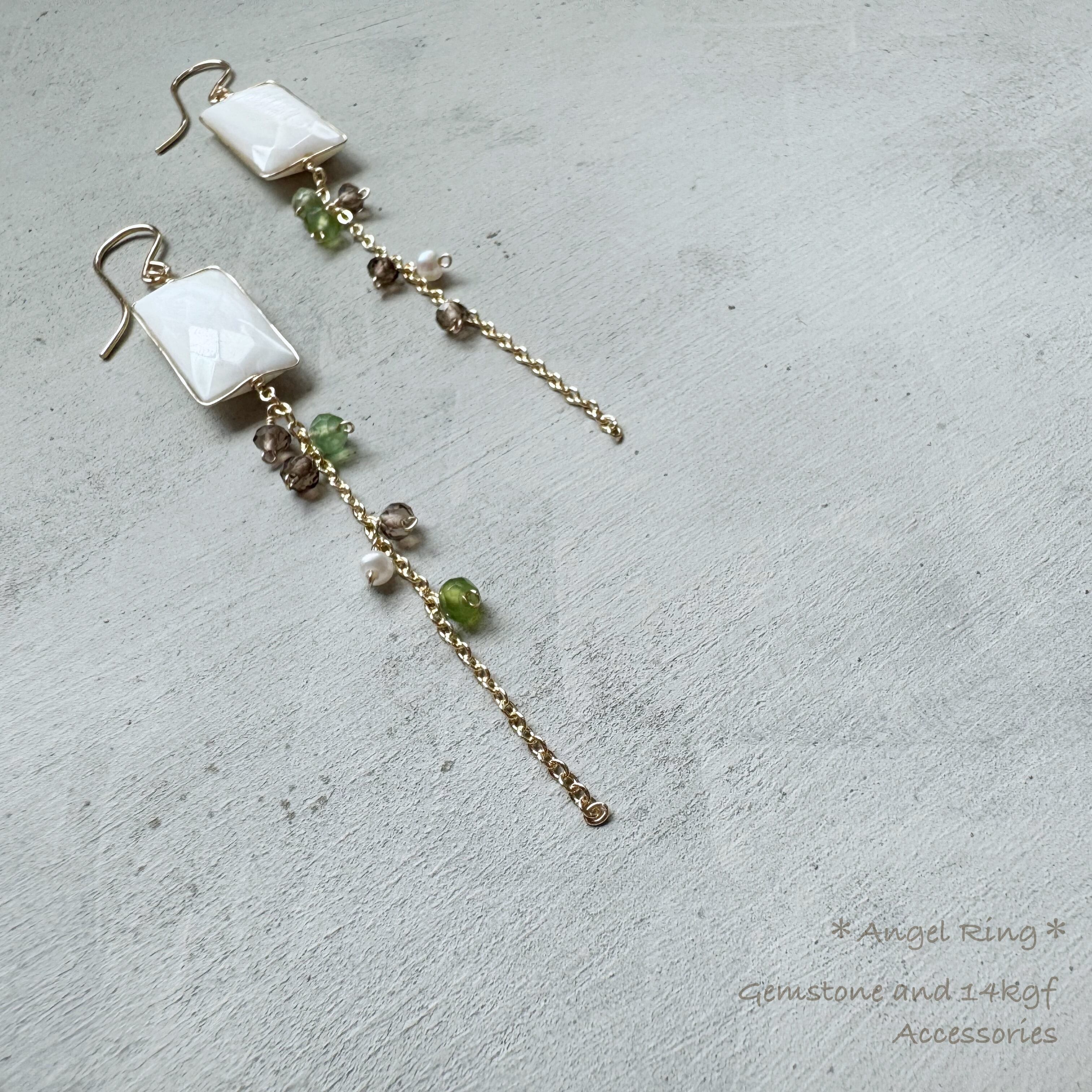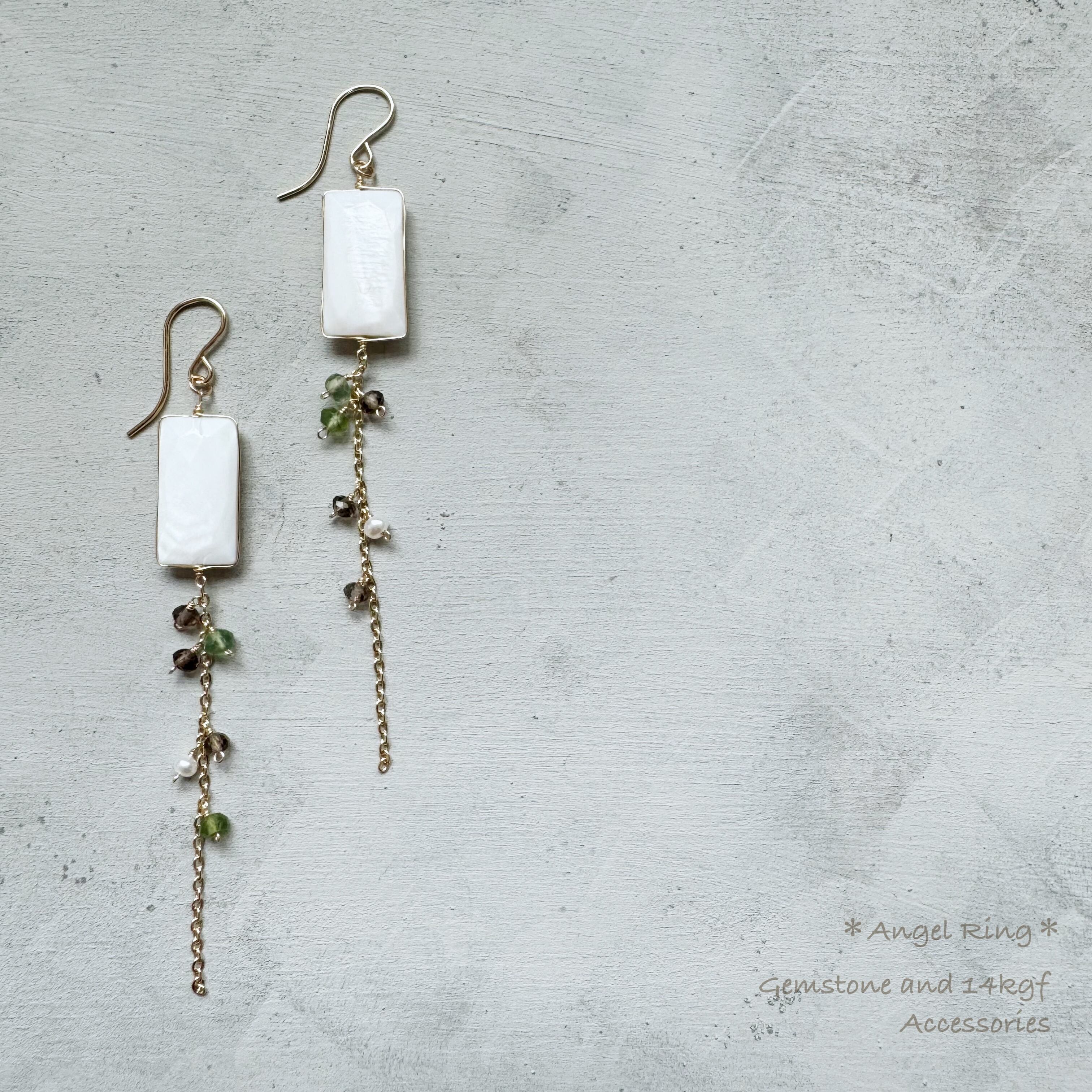 ♦素 材:白蝶貝、サーペンティン、スモーキークォーツ、淡水パール、14KGF