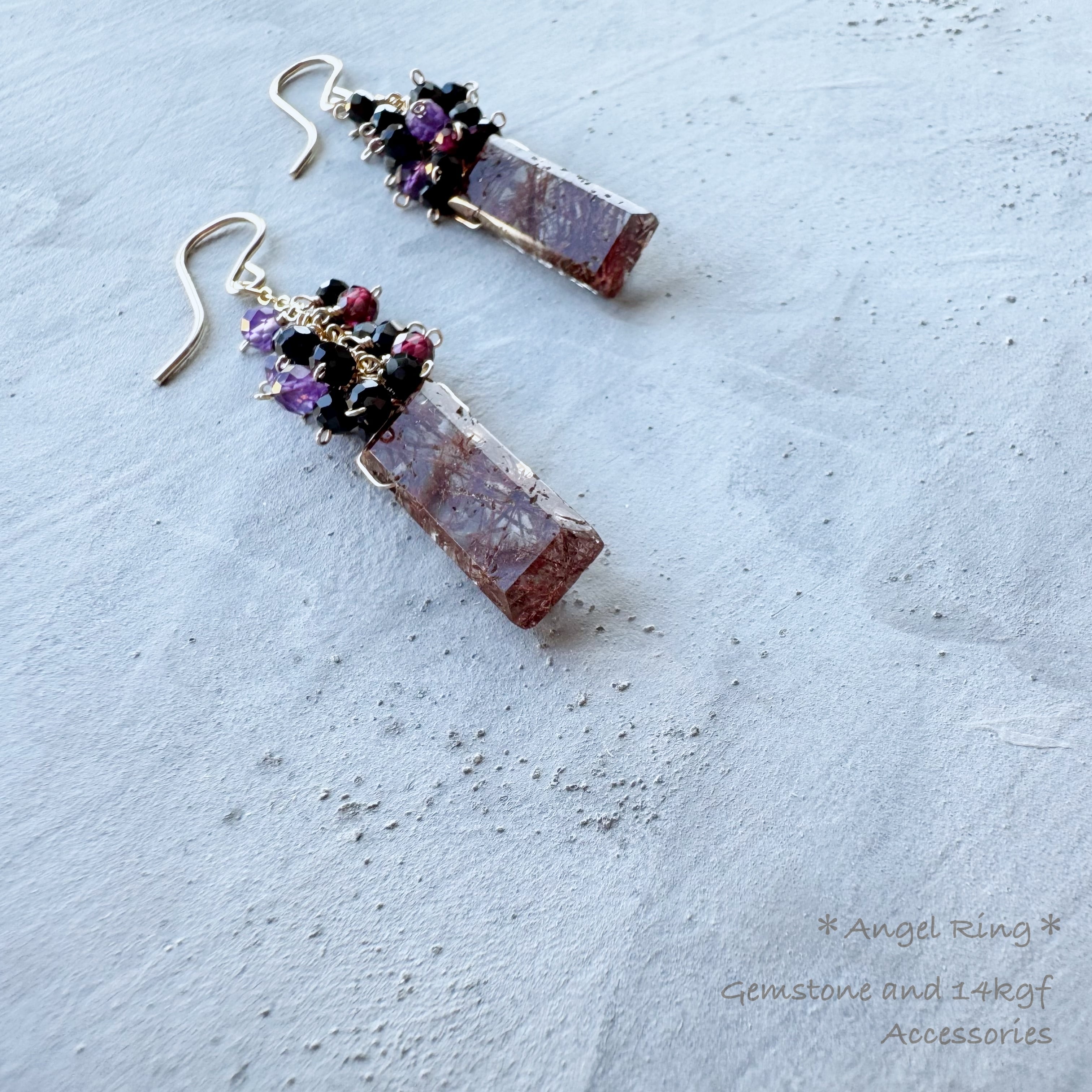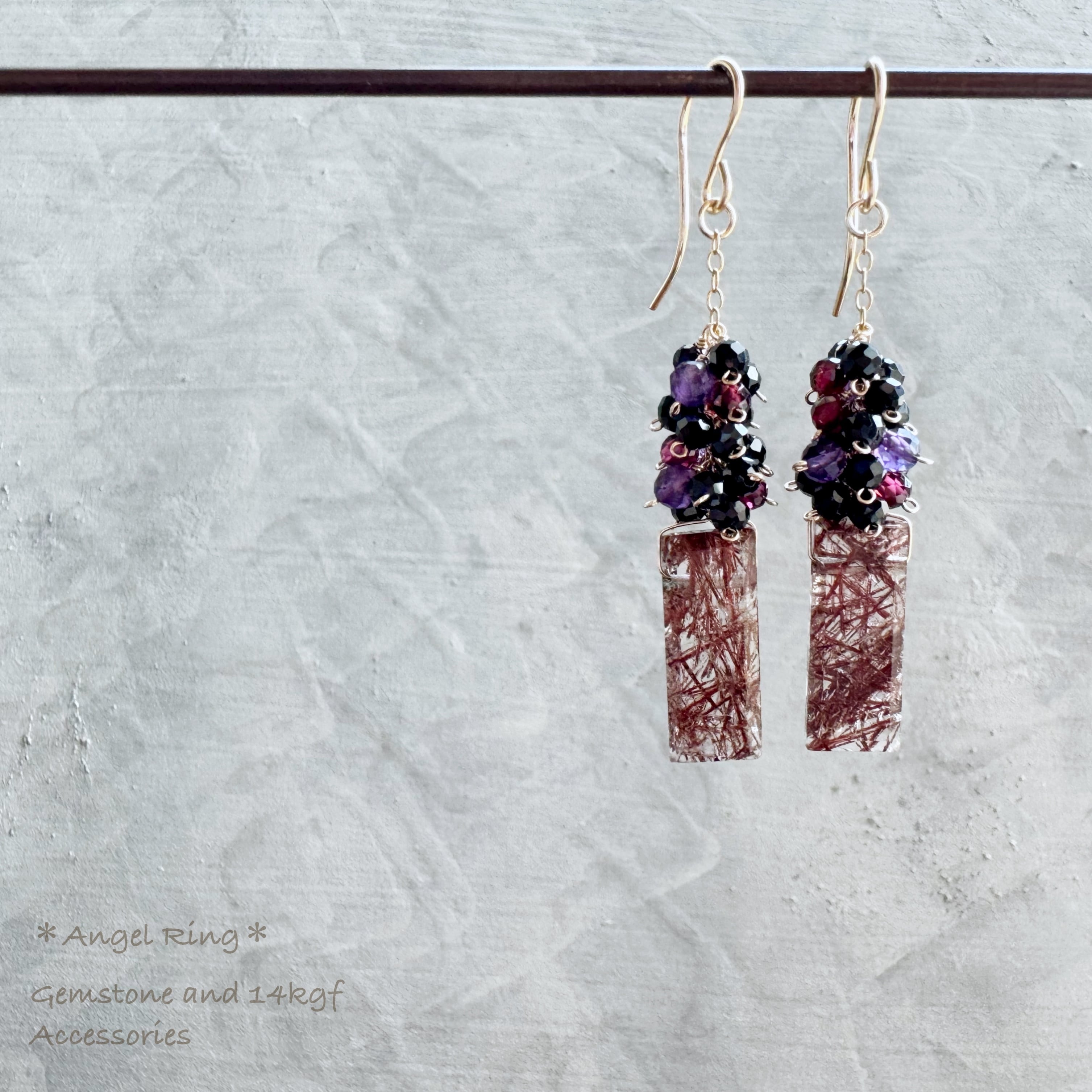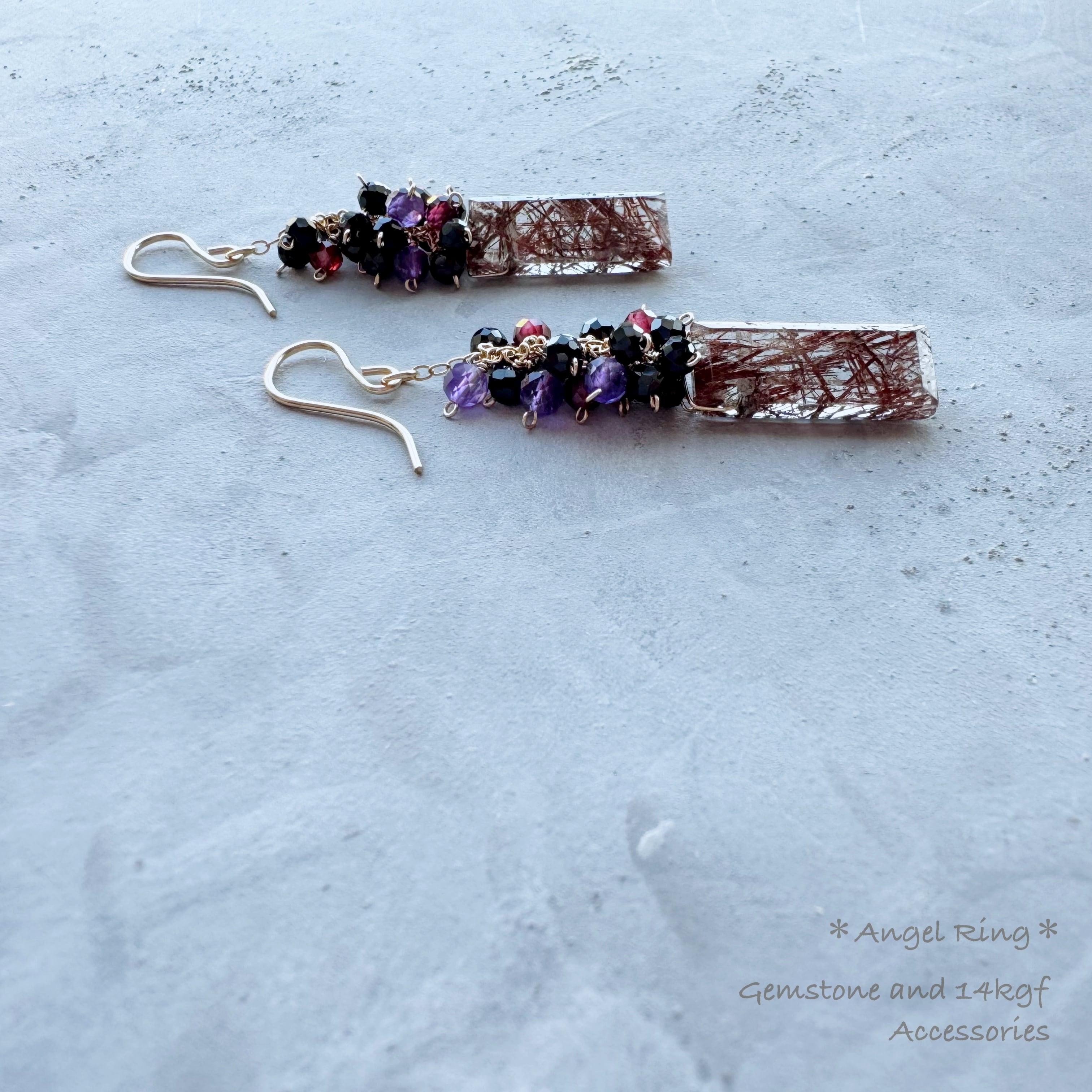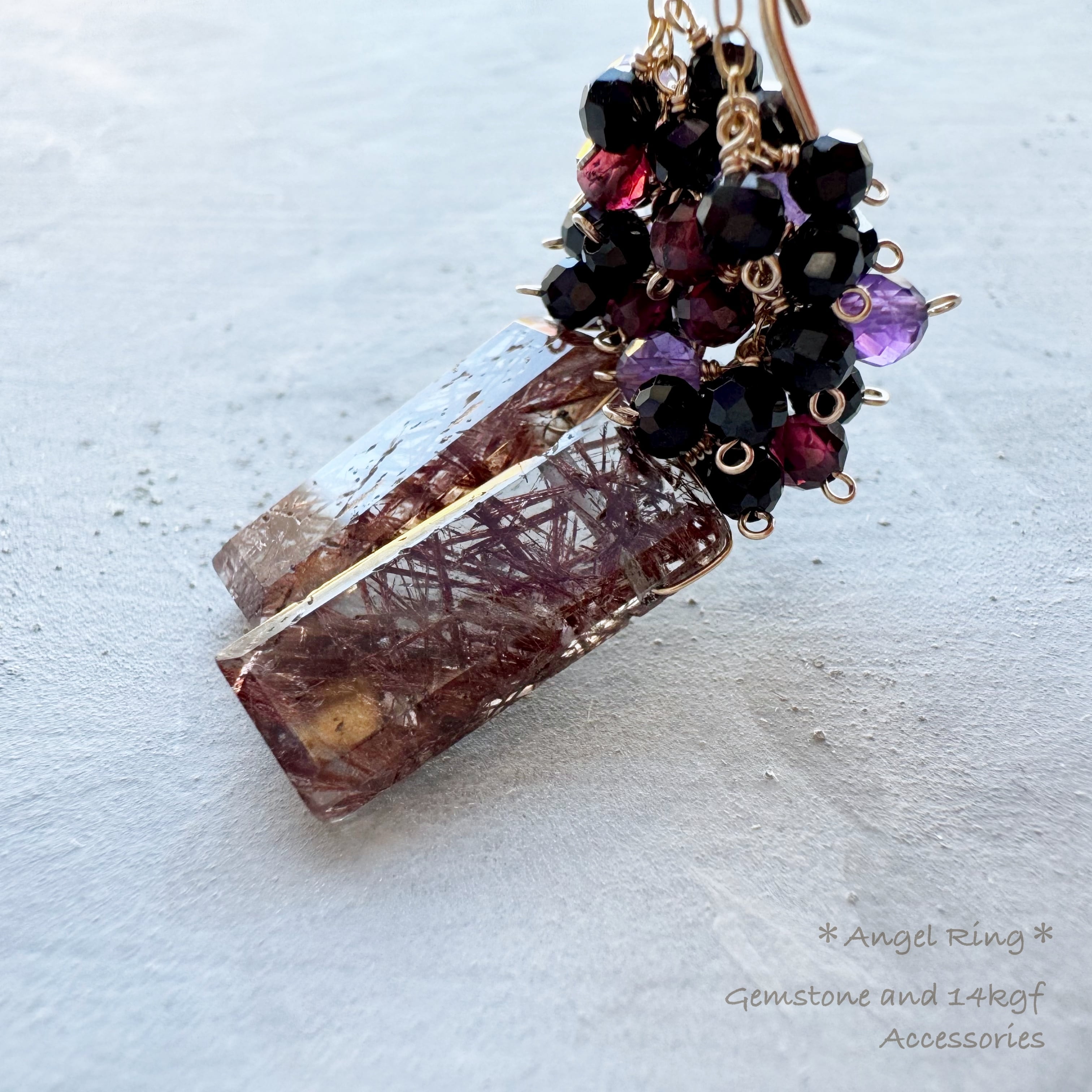 ♦素 材:ブロンズルチルクォーツ、ブラックスピネル、アメジスト、ガーネット、14KGF