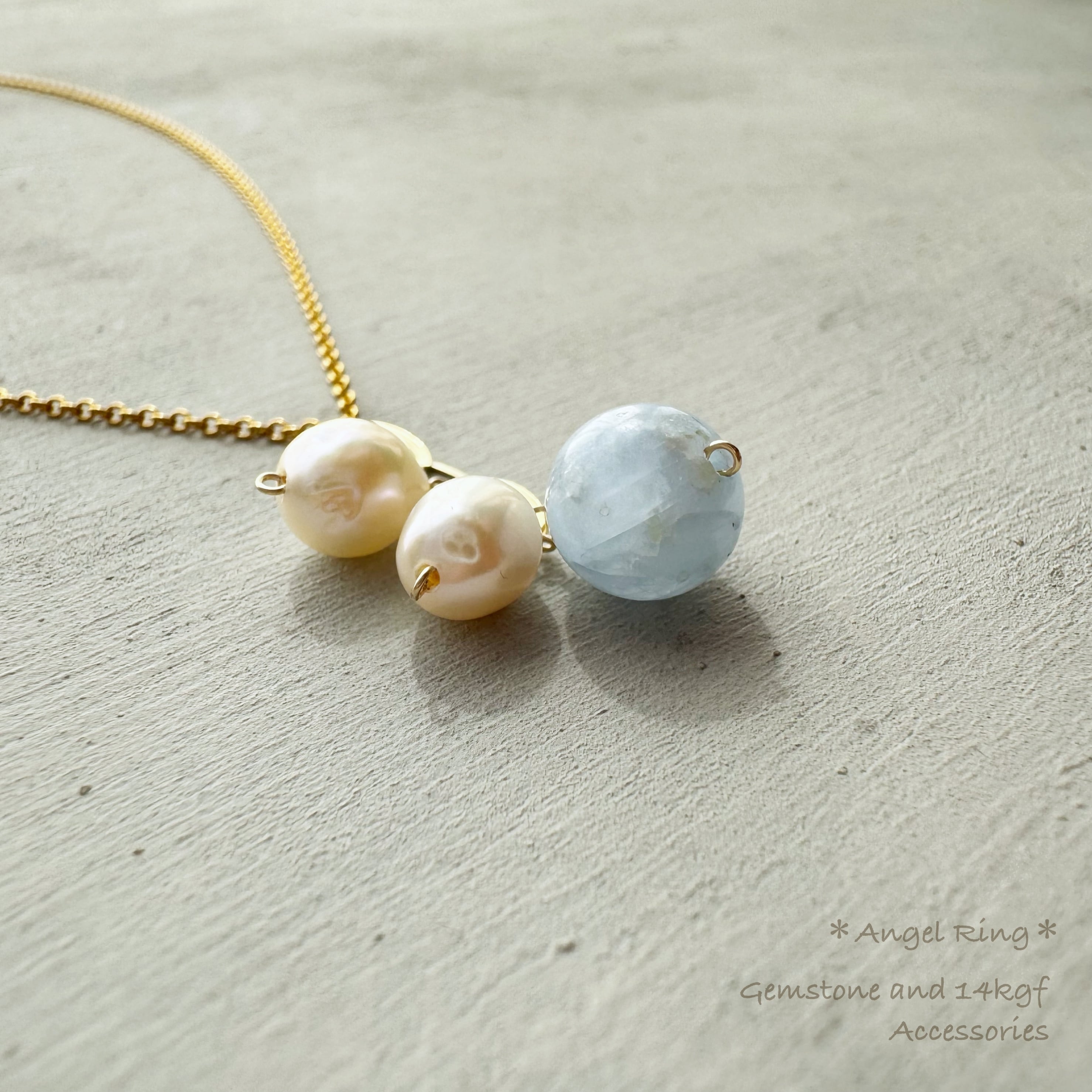 【首飾り(2094)】淡水パール「冬に彩づくーセレスタイトー」