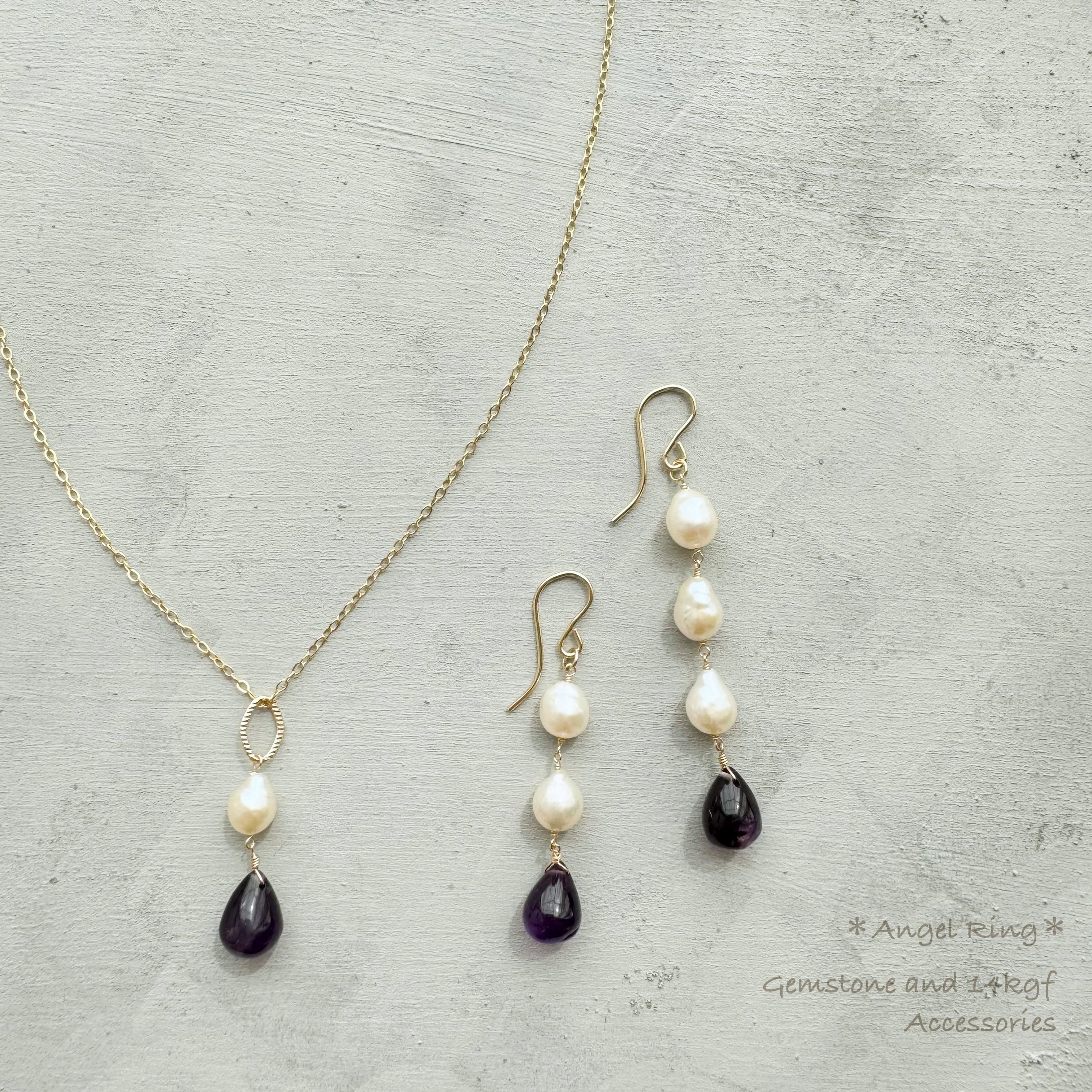 【首飾り(2095)】淡水パール「冬に彩づくーアメジストー」