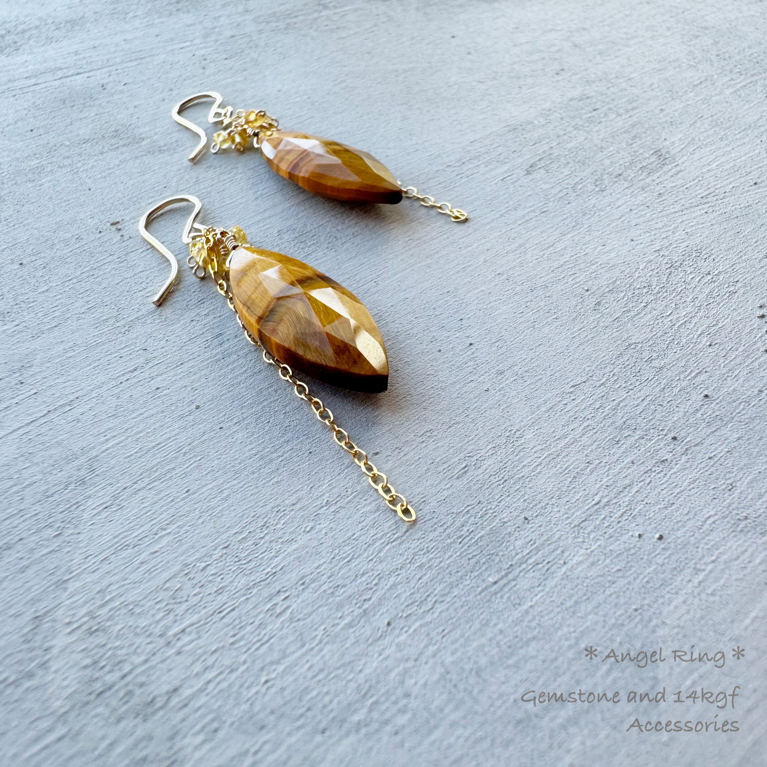 【耳飾り(2101)】タイガーアイ*イエローサファイア「燦(さん)」typeC