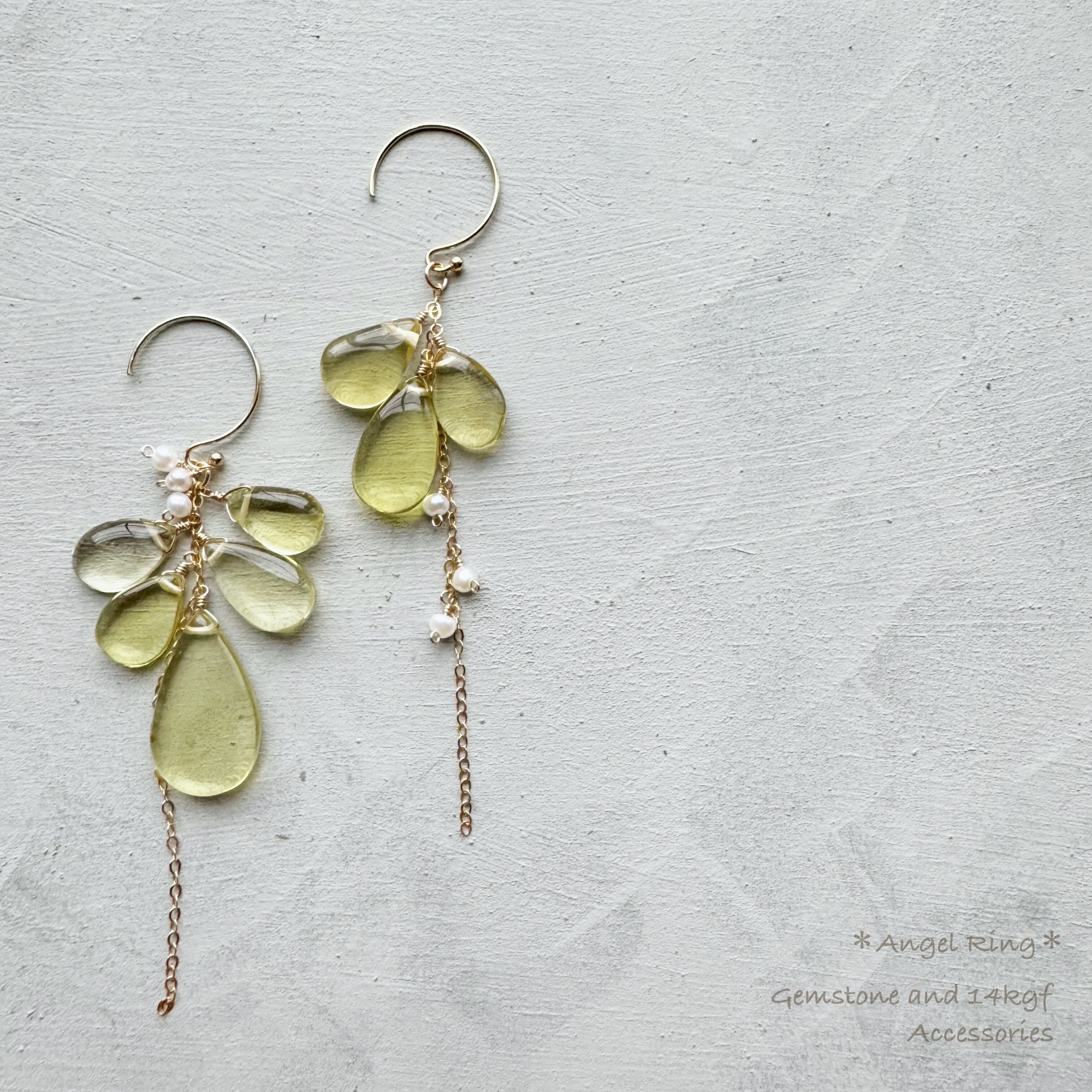 ♦素 材:レモンクォーツ、淡水パール、14KGF