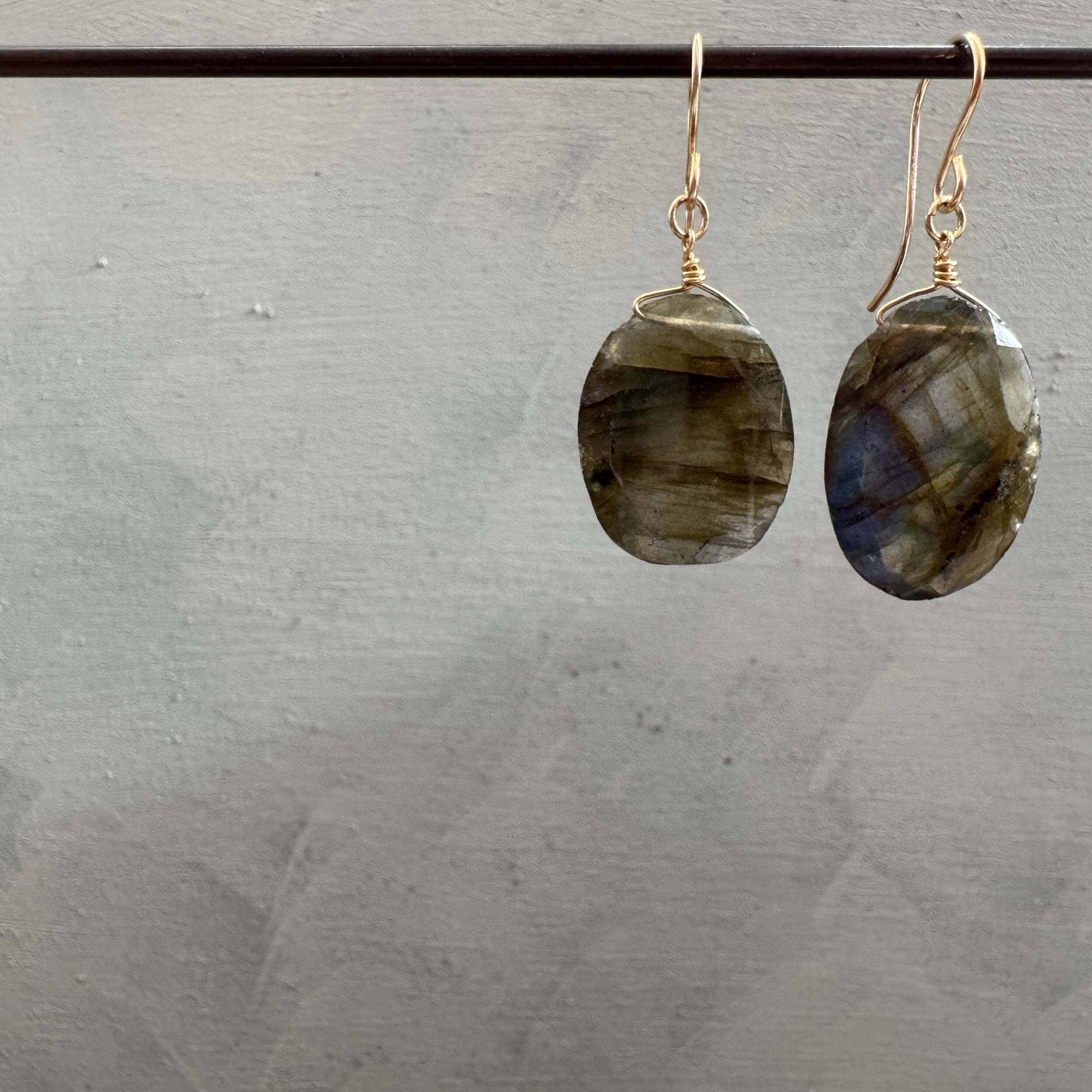 【耳飾り(1242)】ラブラドライト(左右サイズ差あり)