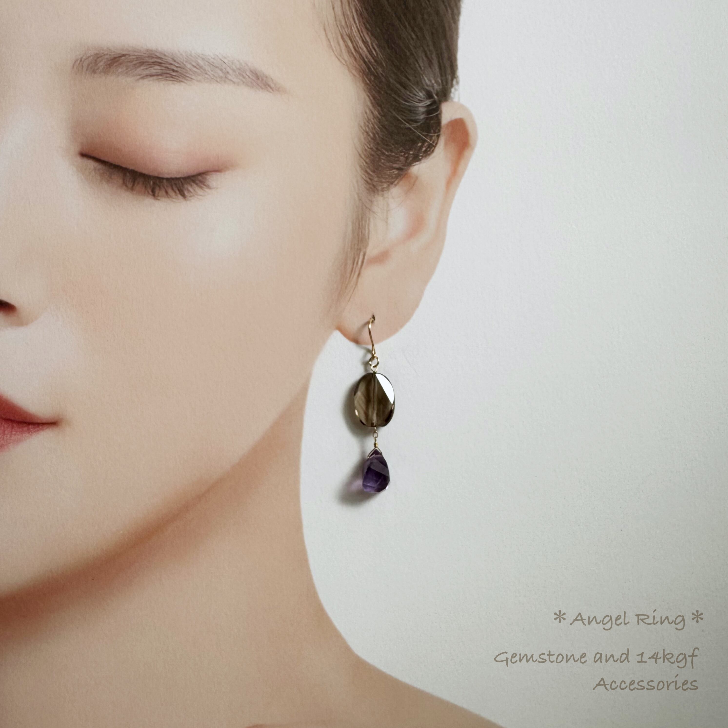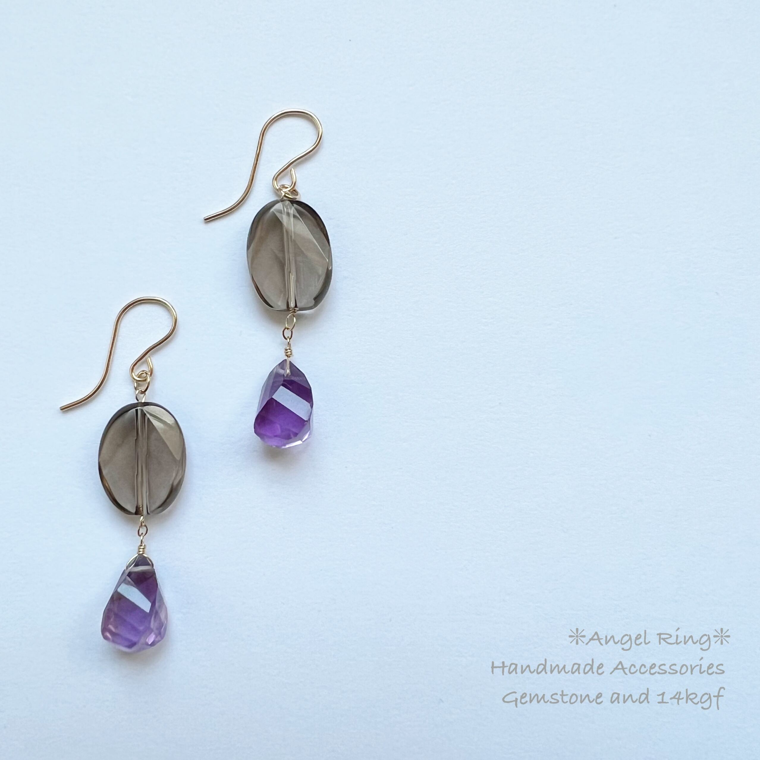 ♦素 材:アメジスト、スモーキークォーツ、14KGF